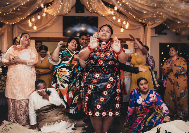This a beautiful and emotional Tongan traditional dance during the wedding. This photo itself summed up full mix of emotion of Close family members and love one for the Wedding couple.