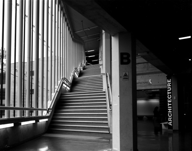A portrait of University of Canberra Building 7, shot on 4x5in