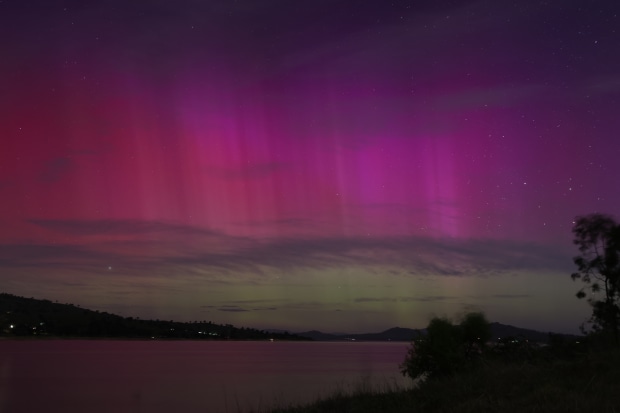 The October 2024 Aurora Australis put on a beautiful display over the waters of Lake Hume, Albury N.S.W.