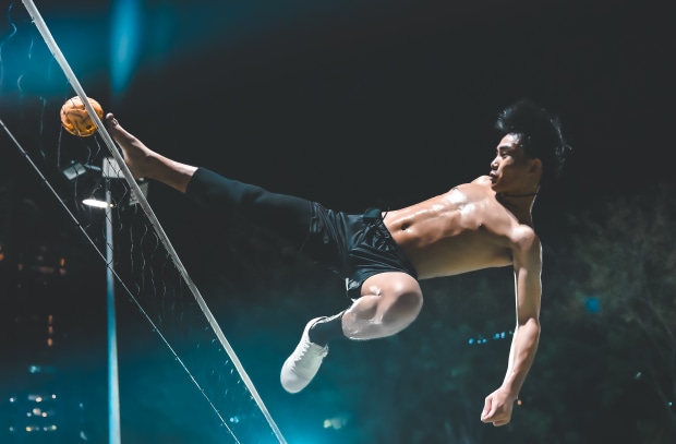 Captured during a sepak takraw match in Thailand, this image isolates the instant the body becomes pure trajectory. Every muscle is drawn tight, every line loaded with force. Motion is weaponised — released with explosive precision, carrying speed, intent, and imminent impact through a single airborne strike.