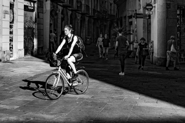 These photographs were made while wandering through the laneways of Barcelona, where light and shadow shape the rhythm of daily life. I was drawn to the quiet moments — a lone walker, a cyclist emerging from darkness, the textures of wet stone and rising steam. Together, the images reflect the experience of moving through an unfamiliar city on foot, noticing small gestures and fleeting encounters. Rather than iconic landmarks, this series focuses on the intimate, lived‑in spaces that reveal the city’s character.