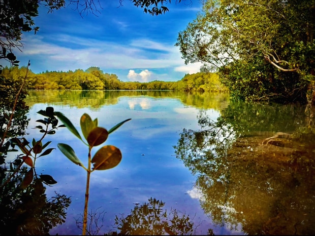 Late afternoon photograph of Rapid Creek, NT at high tide on a waning crescent moon.