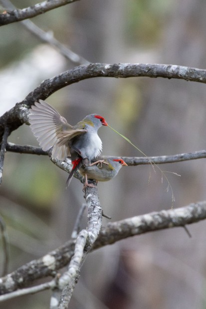 Red-browed Finch male successfully courting a female.