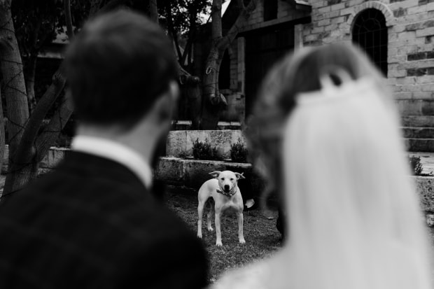 Series of black and white images taken in multiple weddings with a high focus on composition. And also, a cute furry friend cameo!