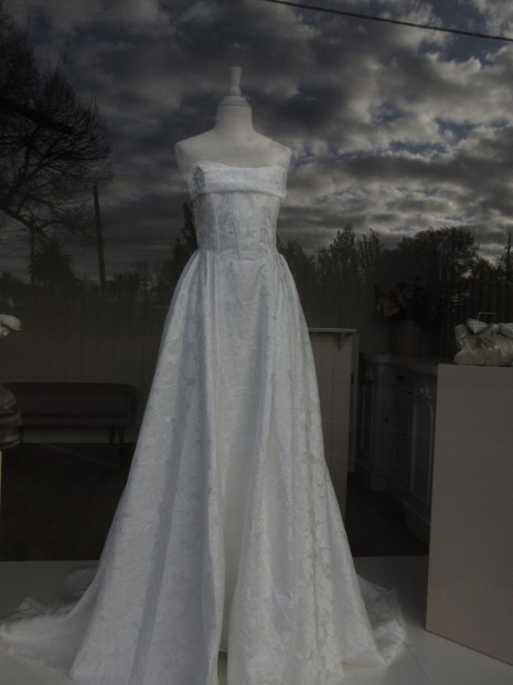Looking through window of bridal salon