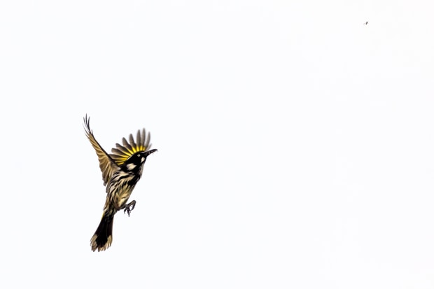 Honeyeaters show incredible speed and agility in chasing and catching bugs in midair.