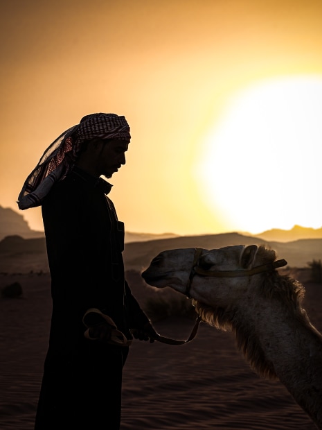 These photos show the relationship between the camels and cameleers of Jordan. A bond formed over years of accompanying each other amongst the breathtaking landscape of Wadi Rum desert.