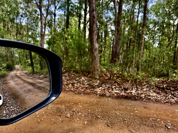 A winding country road full of grit & dirt edged with some Aussie bush.
