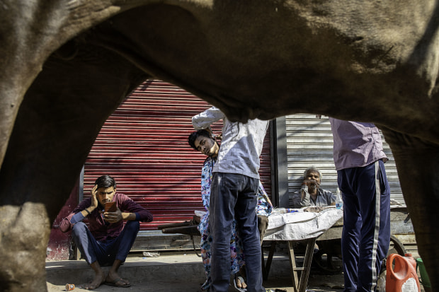 These roadside barbers can be seen at every nook and corner of Old Delhi. The barbers use straight razors with open steel blades, commonly known as cut-throats, and perform multiple shaves within a few minutes without changing the blades. Needless to say, there is no scope for sterilizing or even washing the equipment or razors between customers. But most don't seem to mind. Often, while shaving, the barber will twist your face into an odd position, left ear squeezed into left shoulder, so he can reach the difficult corners.