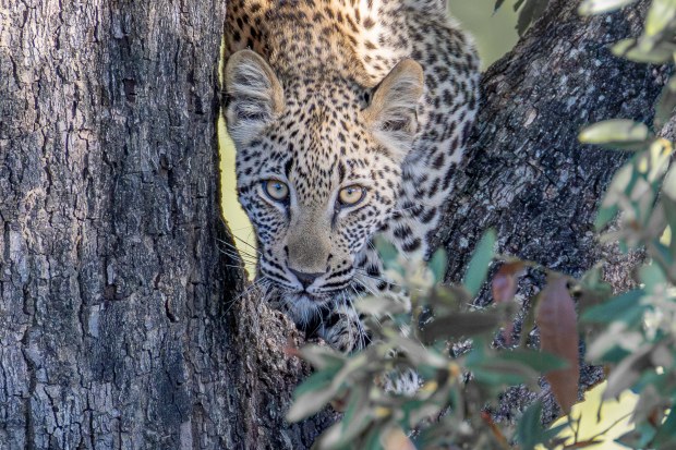 t is always the dream of being there to see a leopard slowly descend a tree and as they say timing is everything as we literally just arrived and could see this young leopard starting to come down and had only moments to capture this image as the leopard seemingly looks directly at us. It was such an incredibly special moment.