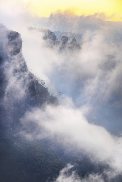 Very late arvo sunset just in time to set up. Sunrise toward the Wild Dog Mountains and a peak named Cloudmaker. 3 sister's shrouded in clouds at sunrise.