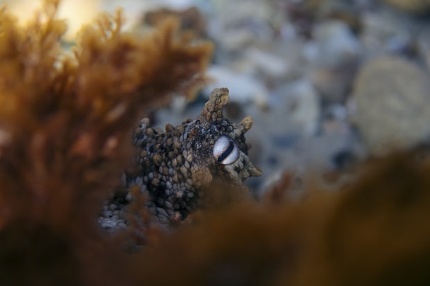 Staring into the eye of the Western Rock Octopus (Octopus Djinda) is like staring into the window of another world. I spent a notable amount of time over several days, watching their behaviours while they did the same to me. With patience I was able to use our mutual curiosity to capture these moments on a single breathe with only ambient lighting.