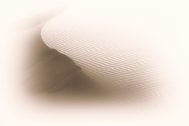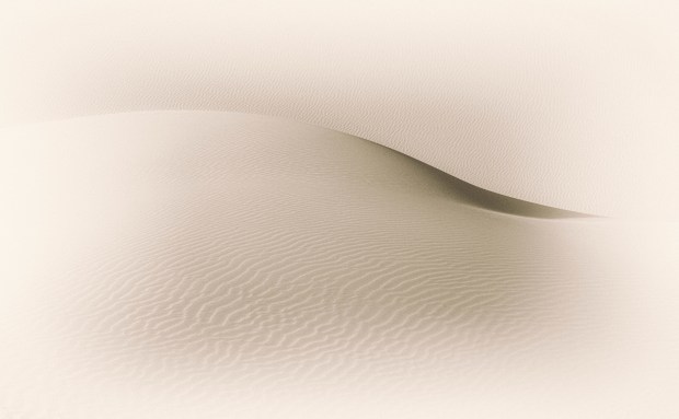 The delicate curves and textures of the high sand dunes of the Sahara in Morocco, etched by the wind and bathed in late afternoon light