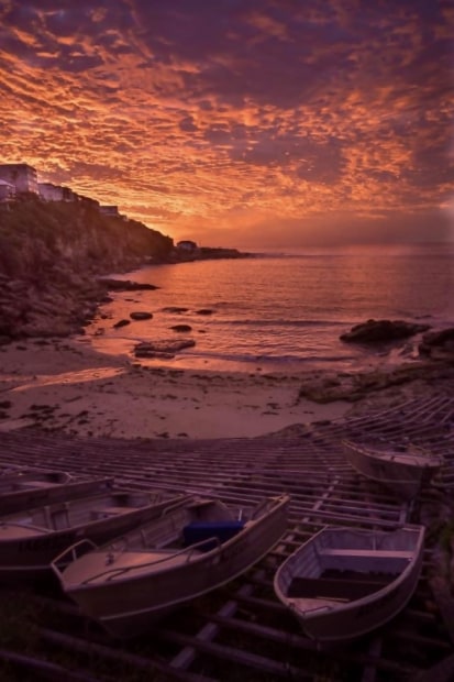 Early morning Gordon’s Bay. Fishing boats waiting to be taken out.