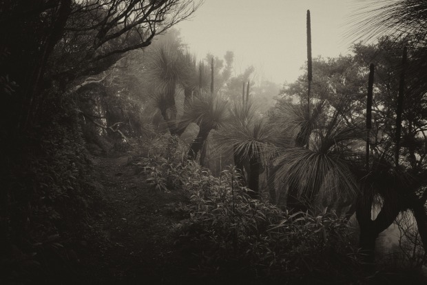 The path less traveled, in the clouds and the rain, at Main Range National park.
