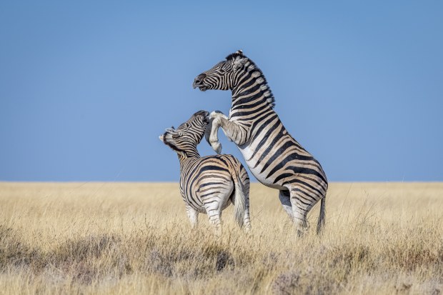 Etosha National Park in Namibia, Africa, is an incredible place for wildlife conservation. These are three hero images of powerful animals within Etosha: Rhinoceros - This male rhino was patrolling and marking his territory. Rhinos can weigh up to 4.5 tonnes, are able to overturn vehicles and have a formidable power in the animal kingdom. Leopard - This young female leopard was warming up in the morning sun. Leopards are capable of hoisting prey twice their body weight up trees, a feat requiring immense muscle power. Zebra - Two male zebras play-fighting. Their kick is considered one of the most powerful in the animal kingdom, delivering up to 3000 pounds of force, capable of breaking a lion's jaw.