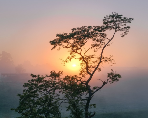 Stephen Milner, HIDING IN THE FOG (Sunrise) (LANDSCAPE 2022)