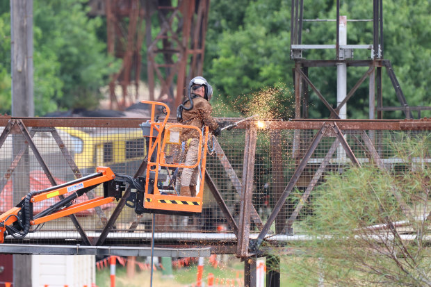 On December 6, 2025, I was lucky enough to capture the removal of the oldest footbridge over the railway in Albury. The bridge was opened in 1911 and was removed for the Inland Rail project as it wasn't high enough for the double-stacked freight trains. A new higher bridge is being made and will be opened sometime soon.