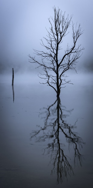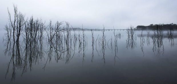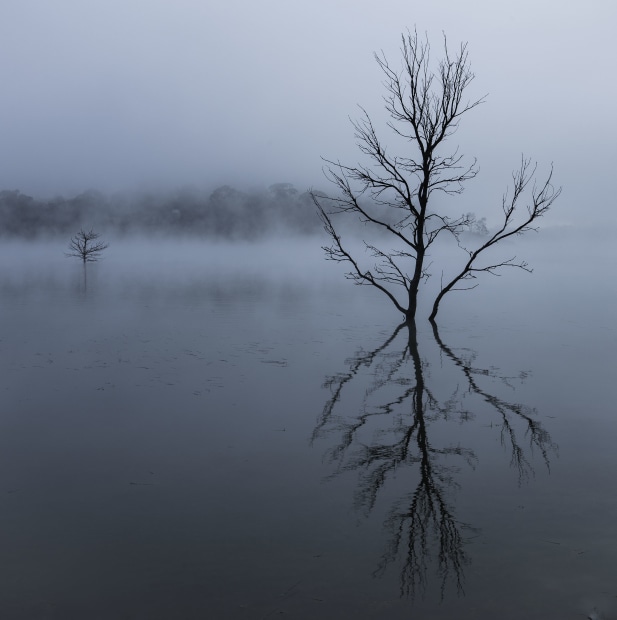Early morning at Lake Eildon, Victoria, Australia, in the cool colours of morning.