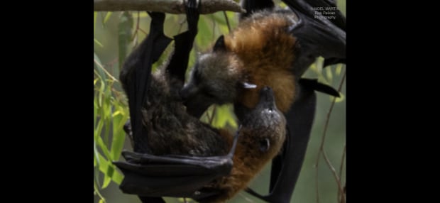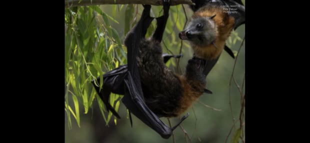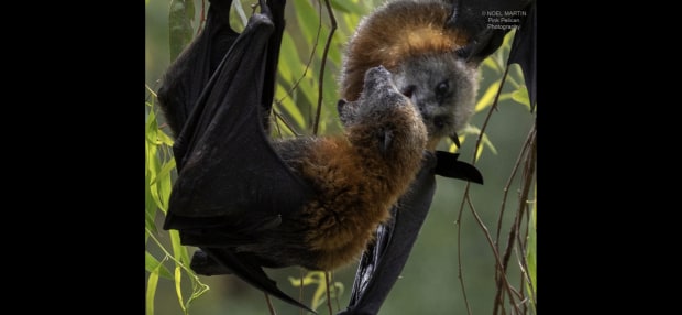 2 flying foxes having a disagreement