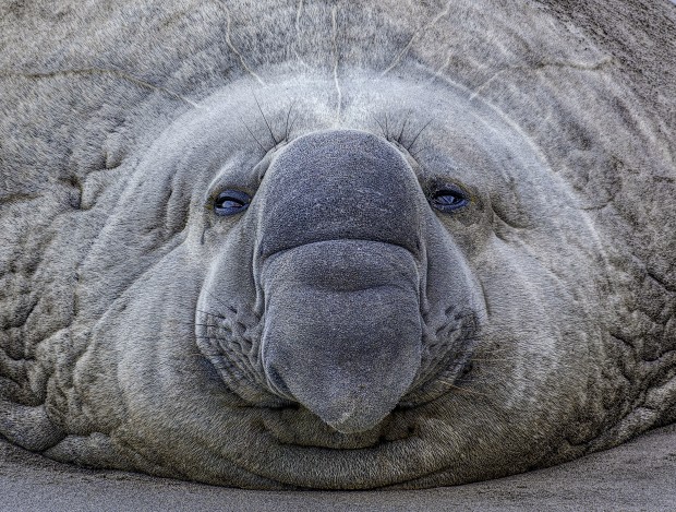 Close-up of an elephant seal with what looks like a hang dog expression