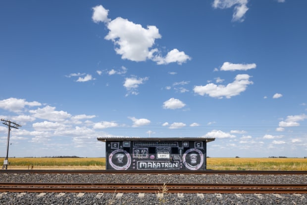 Interesting street art by Makatron on railway siding at Pimpinio near Horsham Victoria