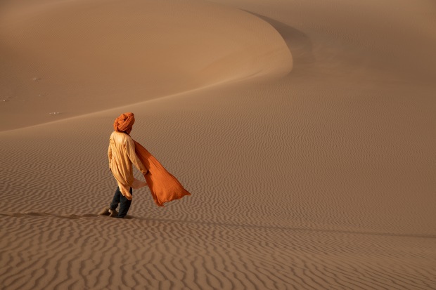 At a remote camp in the Sahara Desert, Morocco this man caught my eye due to his beautiful orange Tuareg Scarf blowing in the desert winds