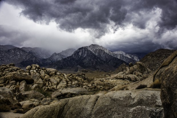 While photographing in the Alabama Hills, a storm developed over the Sierra Nevada mountains.