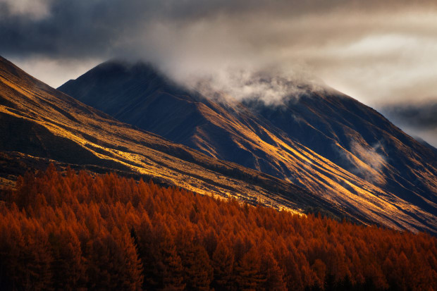 Exploring the New Zealand countryside. The warmth of the landscape balancing the chill in the air.