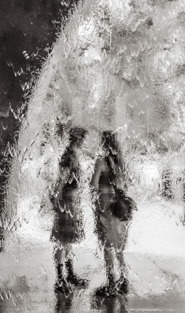Figures dissolve behind a surface that refuses clarity.