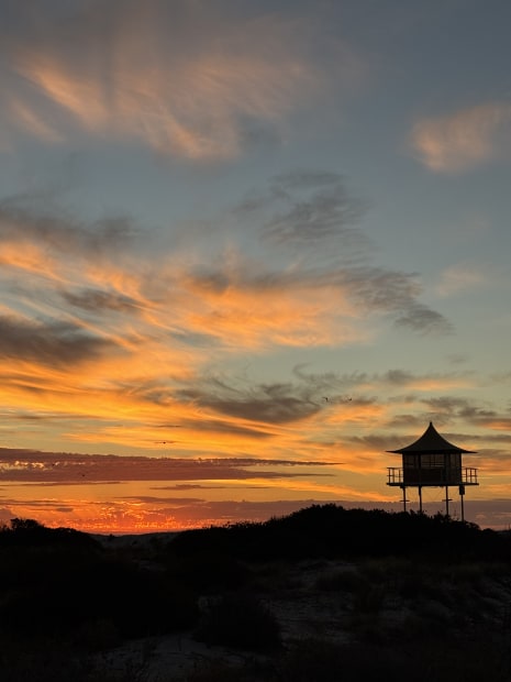 After a busy day, I went to the beach for relaxation and soul-soothing. Standing on the jetty I gazed westward toward the lifeguard's tower, standing empty and silent at this hour. Behind the sand dunes the sun slipped quietly below the horizon, throwing colour and beauty into the sky. One last hurrah before nightfall.