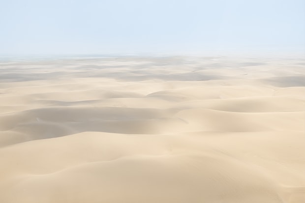 Diffused light through hazy atmospheric air, where the horizon seems to disappear into the distance creating an infinite expanse and colours are muted and soft. Wide open, expansive landscape as far as the eye can see, and not see, a landscape to get lost in.