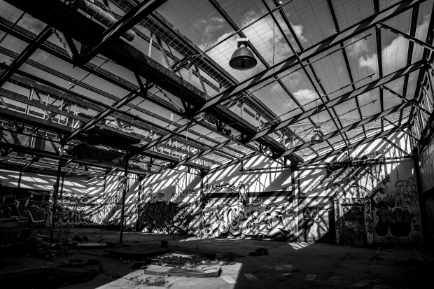 Postindustrial landscapes through the lens of urban exploration. Stripped of color, these spaces reveal form, rhythm, and absence, traces of labor and obsolescence, engaging with material memory and the aesthetics of entropy.
