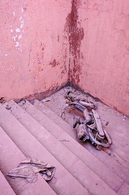 Jaipur's iconic pink walls - once painted to welcome royalty and signify hospitality - form the backdrop to a moment of stillness. Against this enduring cultural canvas, an old motorbike rests, its presence contrasting movement with pause.