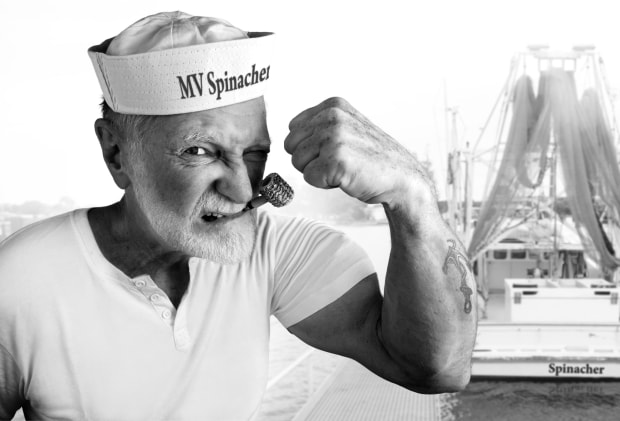 A comical post edited steroid enhanced self portrait emulating an aged Popeye