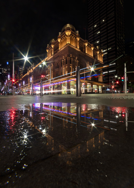 The incessant rains in Sydney are best enjoyed with shooting reflections in the puddle. Eventually I stumbled upon capturing the Queen Victoria Building, QVB.