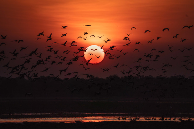 As the thermometer drops below 35 Celsius, and the sun begins to lower behind the distant wetland horizon, the last colourful rays guide the way for thousands of Magpie Geese who return to rest for the night. Towards the end of the dry season in Kakadu national park, as the water begins to dry, the Magpie Geese begin to congregate from around the park to the Mamukala Wetlands. When the dry ends and the skies begin to open, they will spread back out around the park to the surrounding wetlands. Seeing this landscape come alive with colour as thousands of these birds move about at sunrise and sunset is truly spectacular. This image was captured at sunset with a Sony A73, 200-600mm.