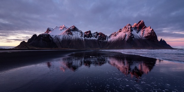After waiting for nearly an hour we were rewarded with the most stunning rose coloured sunset on Vestrahorn in Iceland