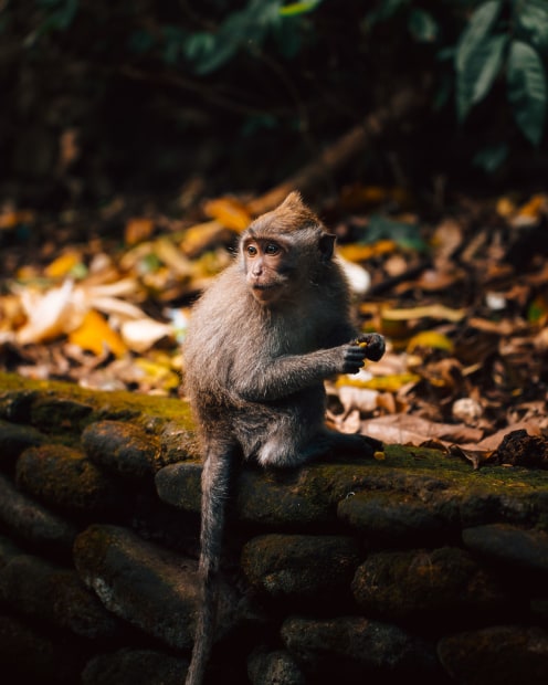 A solitary macaque captured in the heart of the Sacred Monkey Forest Sanctuary, Ubud, Bali, Indonesia.
