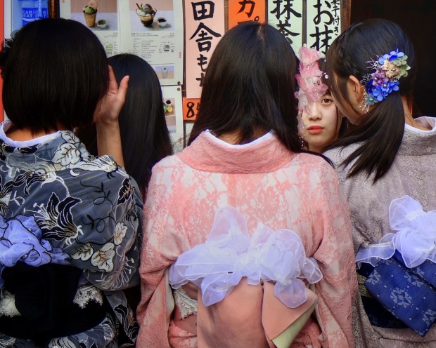 On the streets of Kyoto, Japan, as I was aiming to capture candid and respectful shots, this young woman turned and looked directly into my camera lens. I lowered the camera lens, and for a moment, all went quiet as we kept eye contact before she slowly looked away.