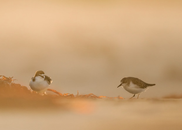Our shorebirds photographed at the end of the breeding season during a high wind sunset evening, creating dreamlike images, one shot in high key, one backlit and the other shot through windswept sand, creating different perspectives