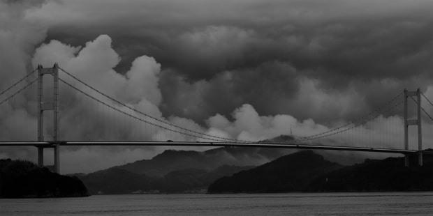 Shimanami Strings From Ōshima, along the Shimanami route in Japan, a bridge stretches like strings across the sky at sunrise, as clouds pluck them. Form and nature resonate— a quiet concerto of planes, layers, and lines. On a journey in March 2026, with a Fujifilm X-T5.