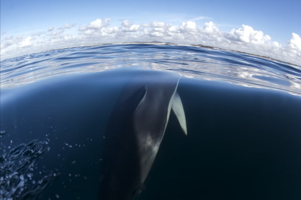 These images were captured in Port Stephens and show common dolphins in unusually calm, glassy conditions. The still surface reveals the dolphins moving just below and along the waterline, documenting a rare moment of calm at sea.