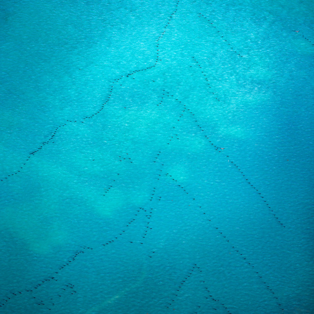 Flying over Money Mia I spotted these birds flying below in the classic V formation and realised I had a special opportunity to capture a view of this graceful scene that few get to see.