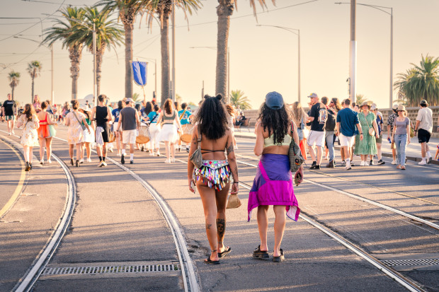 The mural on the side of the Espy looked down on me as I began taking photographs, and I thanked one of my music idols, Paul Kelly, for this hotspot of festive fun. His song played in my mind as I wandered. “From St Kilda to Kings Cross is thirteen hours on a bus. I pressed my face against the glass and watched the white lines rushing past. And all around me felt like all inside me. And my body left me, and my soul went running...I want to see the sun go down from St Kilda Esplanade. Where the beach needs reconstruction, where the palm trees have it hard...' I like it when it feels like summer and when something's so special your hair stands on end. You know you are alive. The urge to preserve is the basis of art, and I adore capturing these brief warm interludes with photography. Every day, people are coming out of their shells. St Kilda seemed to be speaking. The beat of the drum, The sound of a heartbeat.
