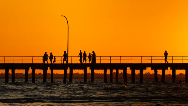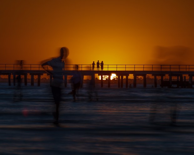 Captured on the Eve of New Years Eve 2021 on a busy Australian beach as the crowds enjoyed the cool ocean waters following a scorching couple of days sunshine. The silhouettes and movement of the people and water really caught my attention. Some stayed stationary and watched the sun go down, others took relief in the coolness of the water. Everyone doing their own thing.