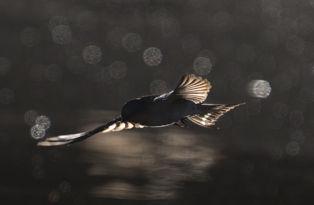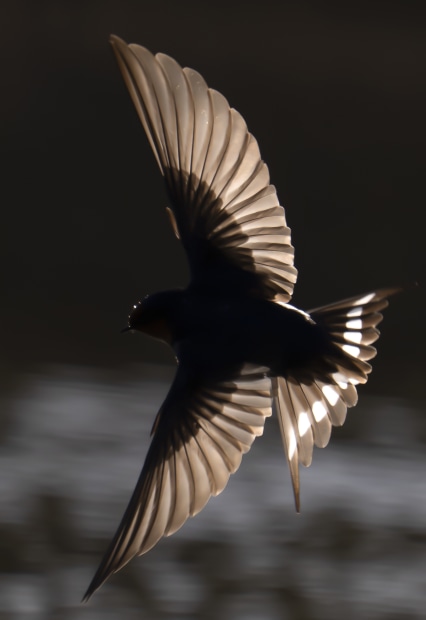 I was driving on a road in Milloo Victoria and came across a farm pond just off the road, where a lot of swallows were flying in and out of the pond in order to catch insects. I was impressed with their wings backlit by morning sun, appeared golden, shimmering, and glowing. I also enjoyed watching the swallows making various poises, especially with sunlight penetrating waterdrops and pond water surface.