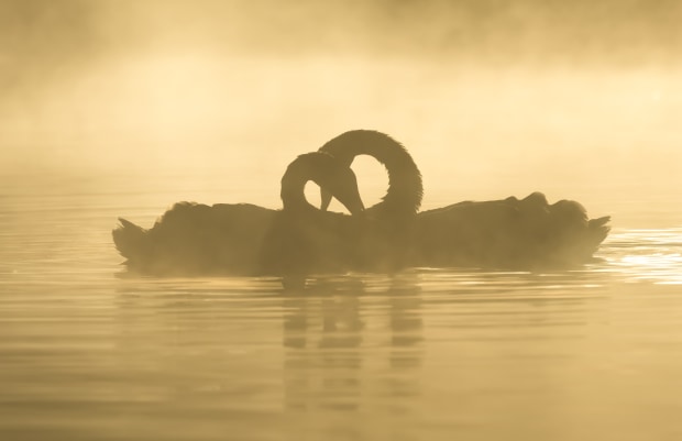 Swans In Dreams is a series of black swans in early morning fog at Morang Wetland(part of Plenty Gorge Reserve of Victoria). Radiation fog around the lake has added intensity to the mysterious emotion of swans, who were swimming either at leisure, or wandered in water with their family, or simply expressing affection.