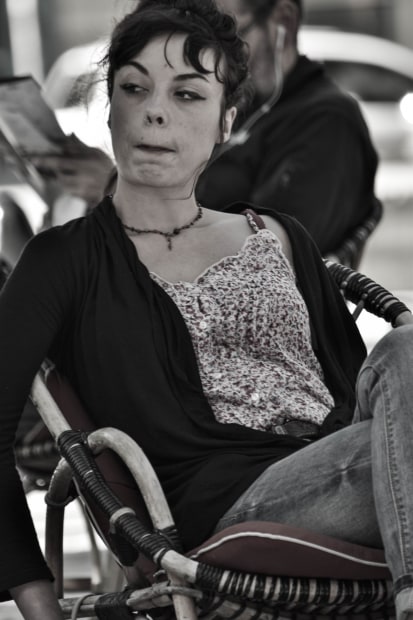 sitting in a cafe in the south of France casually photographing the architecture when this French lady sat across from me, and was looking around and then she saw something that obviously upset her and she frowned and gave this amazing stare. i couldn't resist