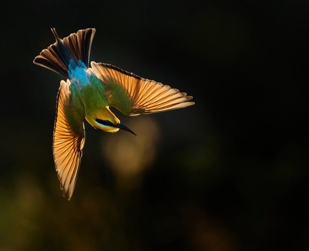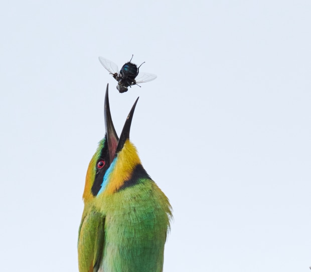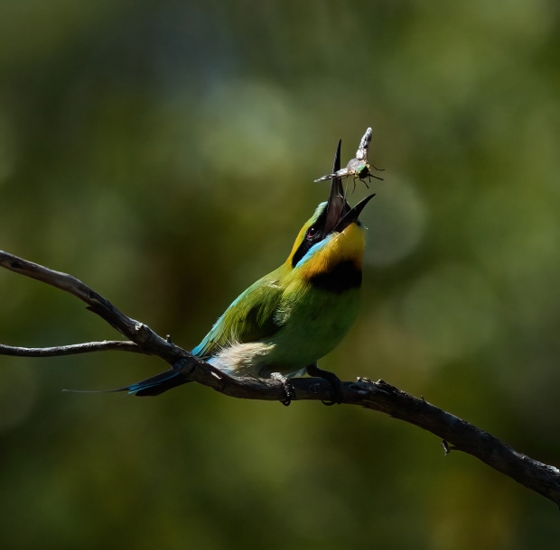 Light and behaviour are the two areas of most interest when I photograph birdlife around Australia. For these images of rainbow bee eaters, I wanted to show the different aspects of hunting, from precision take-offs from branches to tossing different prey in the air.